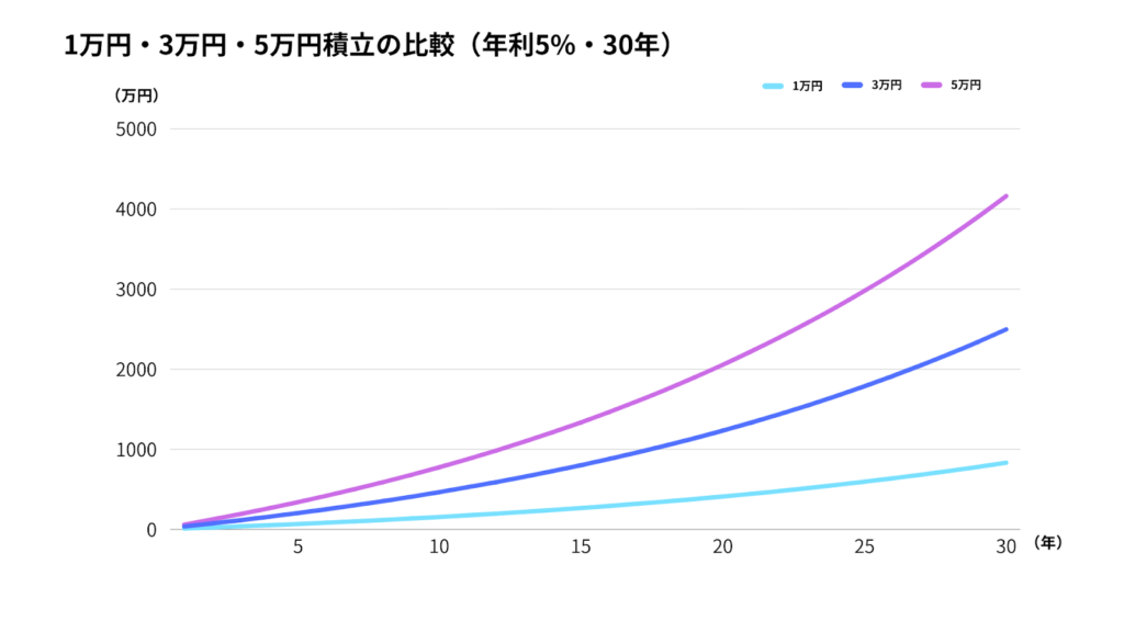 ここでは「積立額・期間・利回りの違い」がどの程度の資産差を生むのかを確認します。