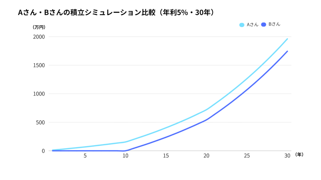 ここでは、「投資を早く始めることの重要性」を実感していただくために、具体的なケース比較をしていきます。